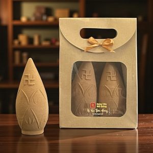 Các sản phẩm được đóng hộp hoặc bao bì mang sắc trầm – vàng kim, gợi cảm giác thiêng liêng và tôn trọng.