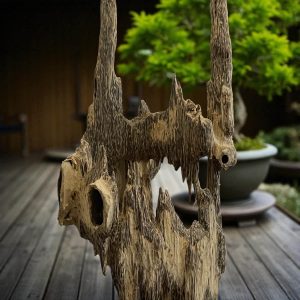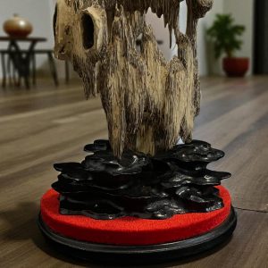 Vân dầu chạy dọc thân, loang nhẹ không đều, tựa như mạch năng lượng luân chuyển. Những vùng rỗng và kẽ hốc sẫm màu do tinh dầu tụ sâu, tạo nên chiều sâu và sức sống riêng biệt cho tác phẩm.