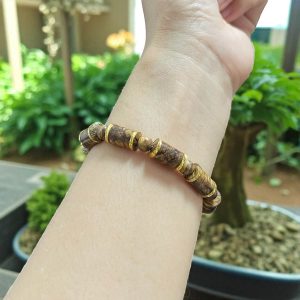 Vòng Tay 8mm Trầm Hương Đốt Trúc Khảm Vàng 18k Tkml1m2