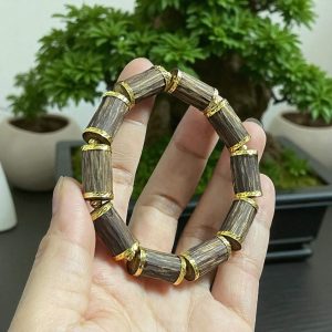 🔸 Mua Vòng Tay Trầm Tự Nhiên Đốt Trúc Khảm Vàng 18k Lakv5m3